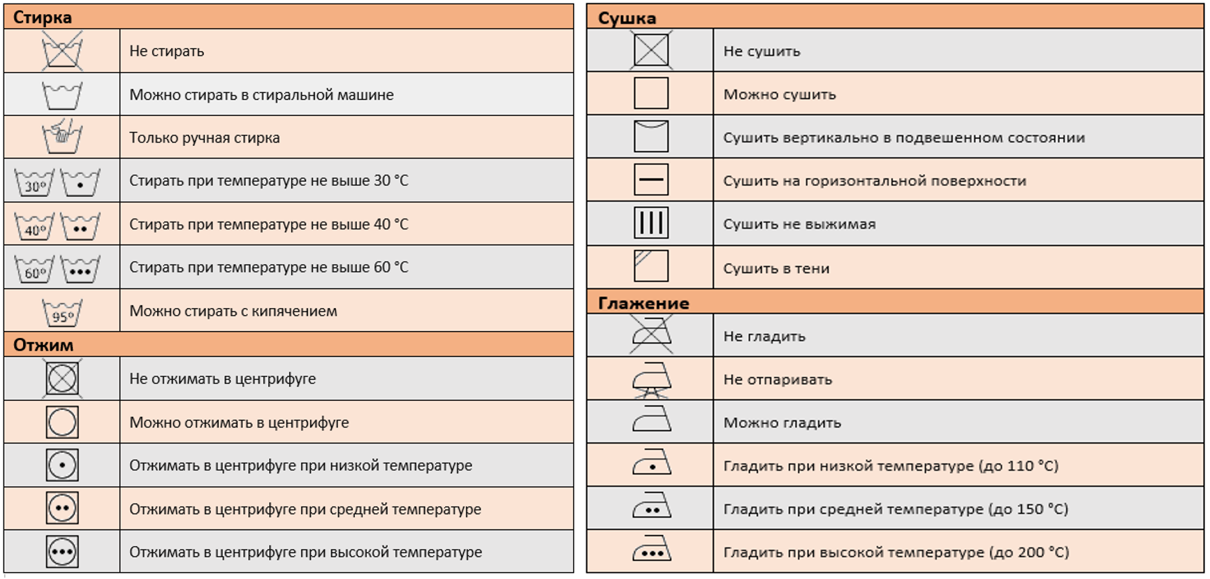 Strictly follow the markings on the clothing labels: